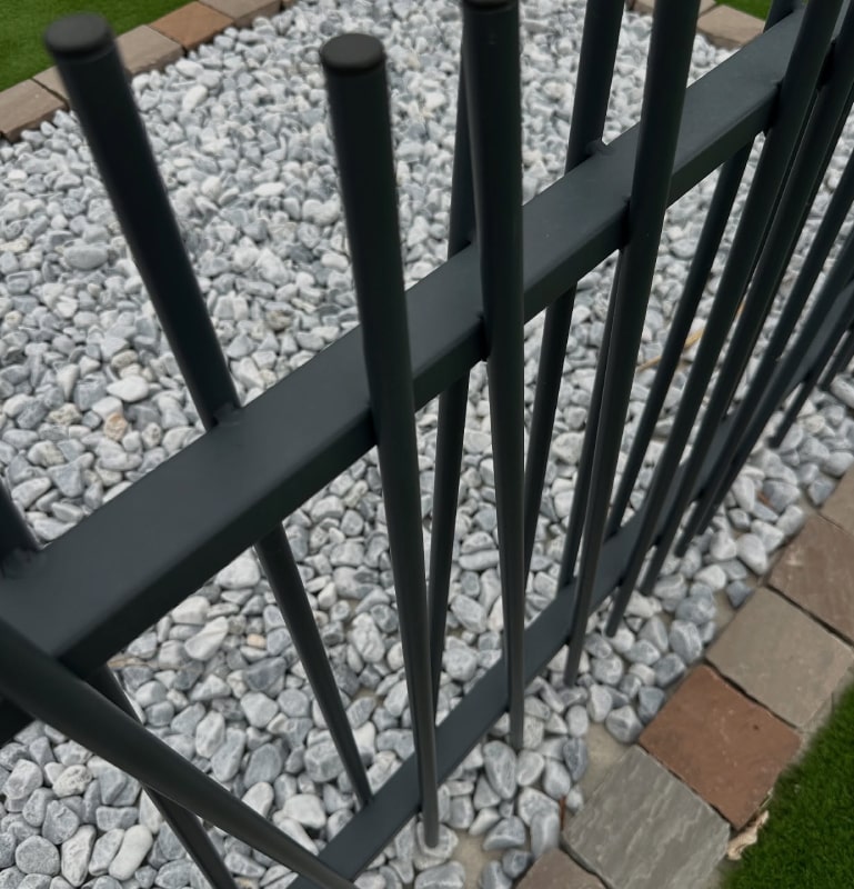 Clôture barreaudée en acier inoxydable thermolaqué qui lui confère une double protection contre la corrosion.